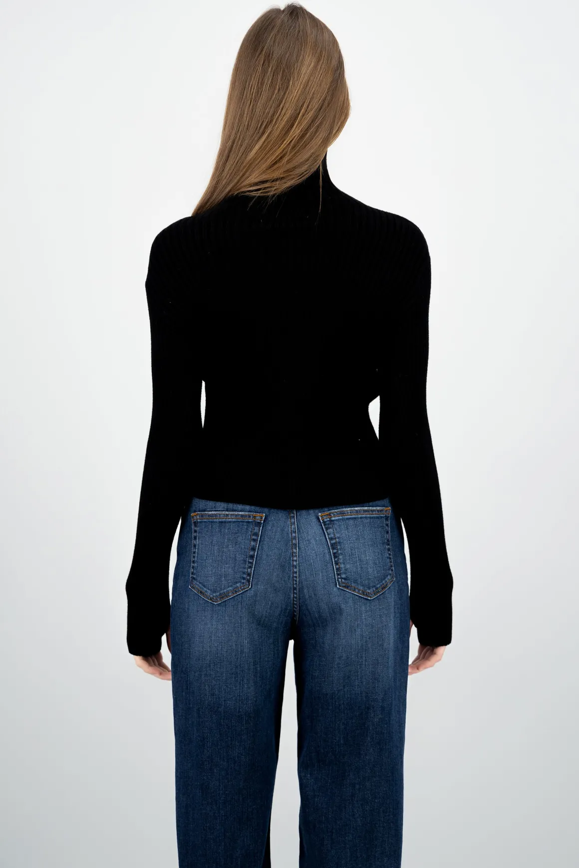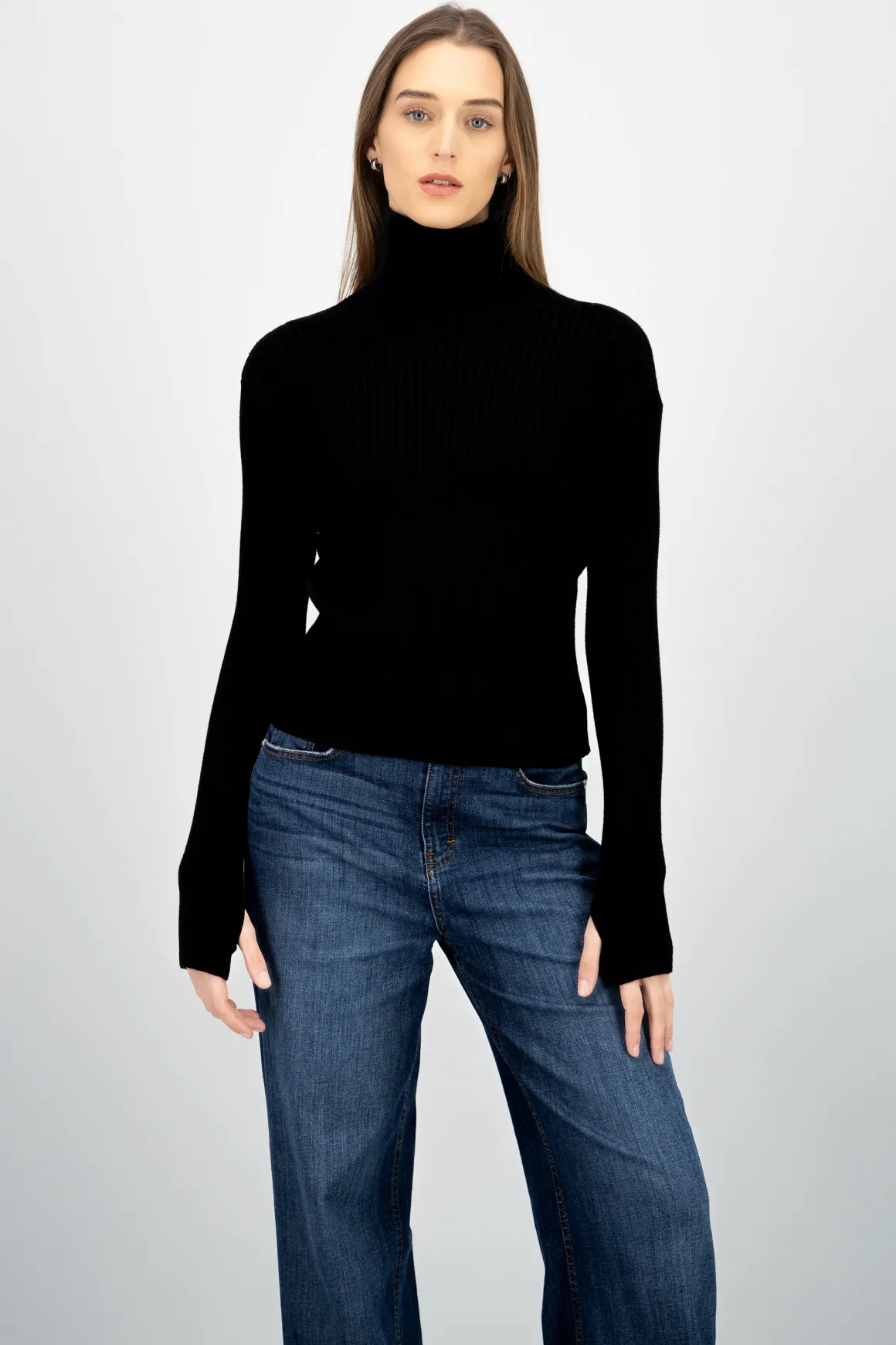 Descubre la esencia del estilo con este suéter de cuello alto y aberturas en los pulgares, perfecto para esos días en los que quieres sentirte cómoda y chic. Su diseño innovador ofrece un toque único que alegrará cualquier outfit.