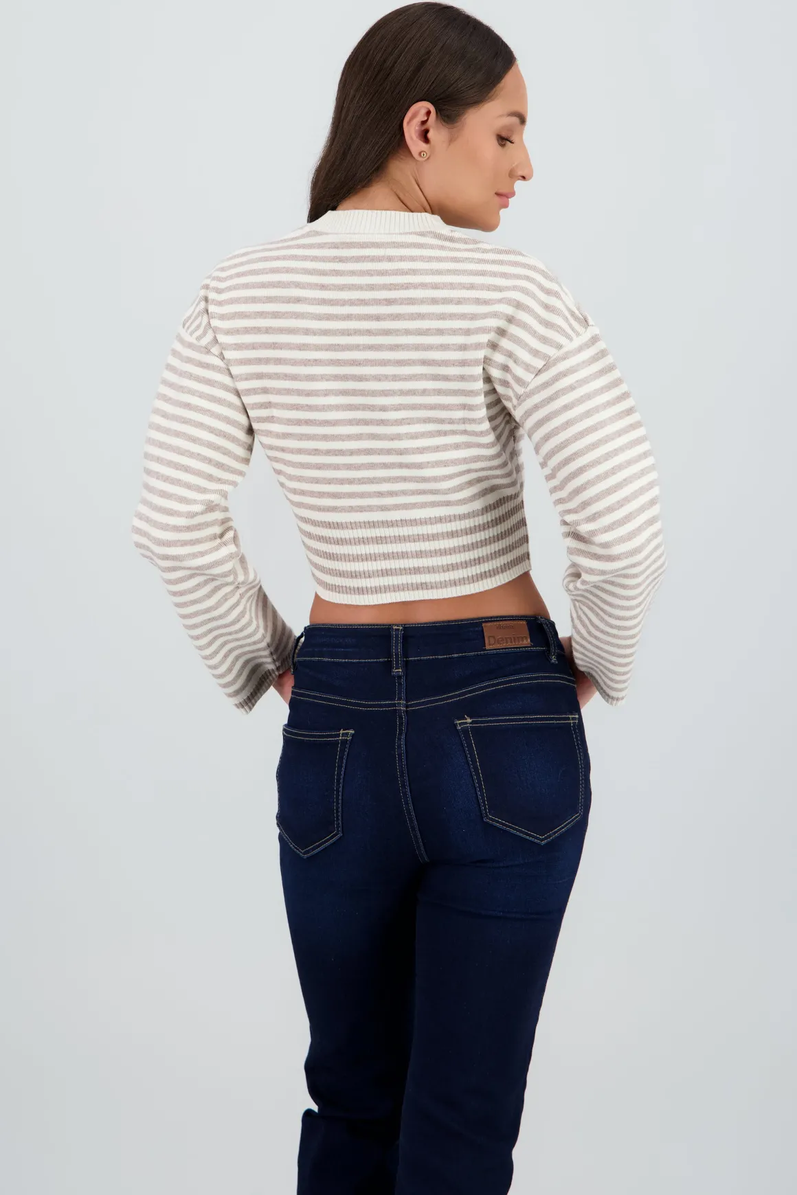 ¡Atrévete a lucir un estilo chic y desenfadado con este suéter ligero de rayas! Perfecto para esas tardes donde el clima te invita a disfrutar de un look casual y a la vez encantador. Este suéter se convertirá en tu aliado ideal para crear outfits increíbles.