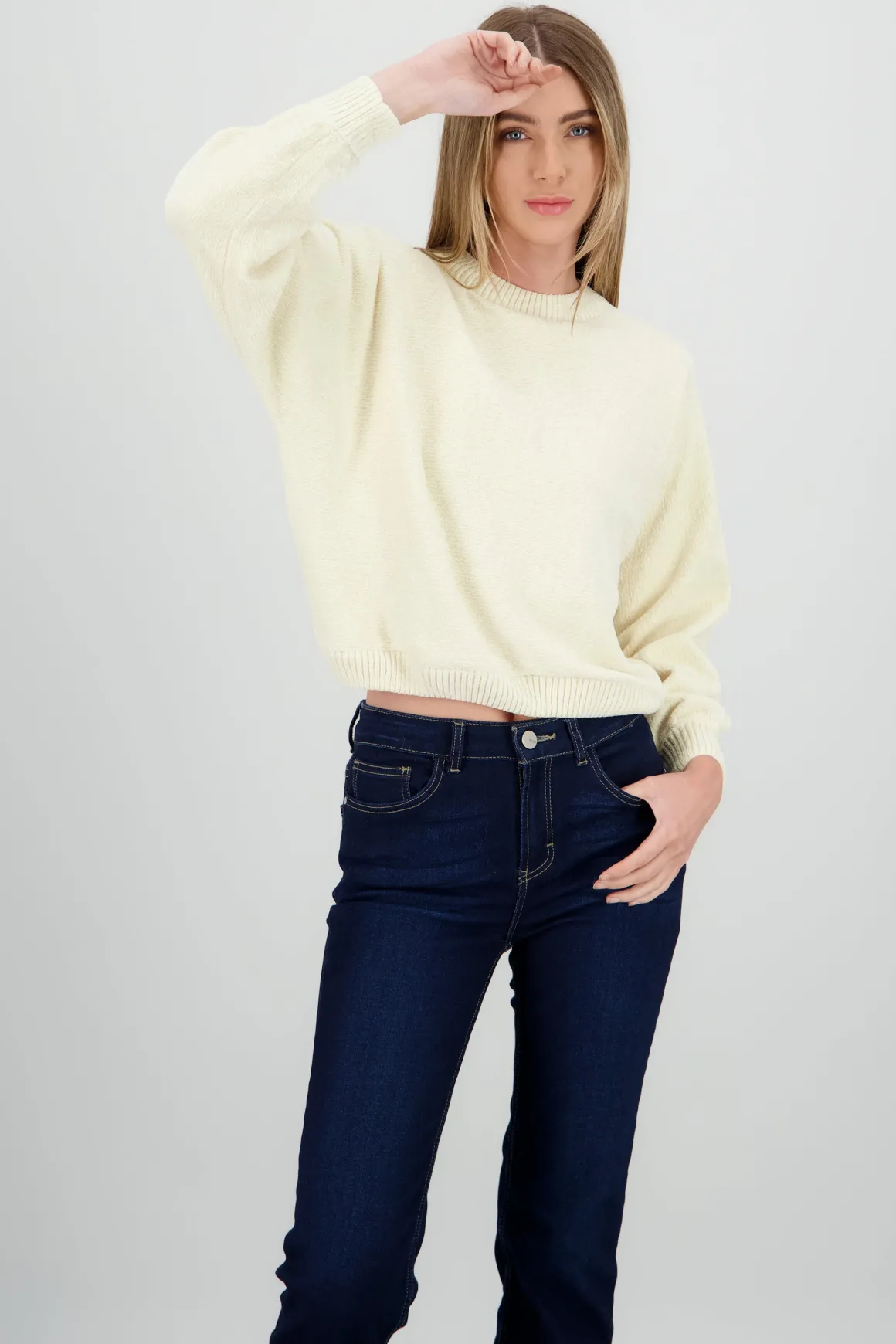 Este suéter es todo lo que necesitas para un look cómodo y con estilo. Perfecto para cualquier día, su diseño liso y sencillo lo convierte en una prenda fácil de combinar y siempre acertada.