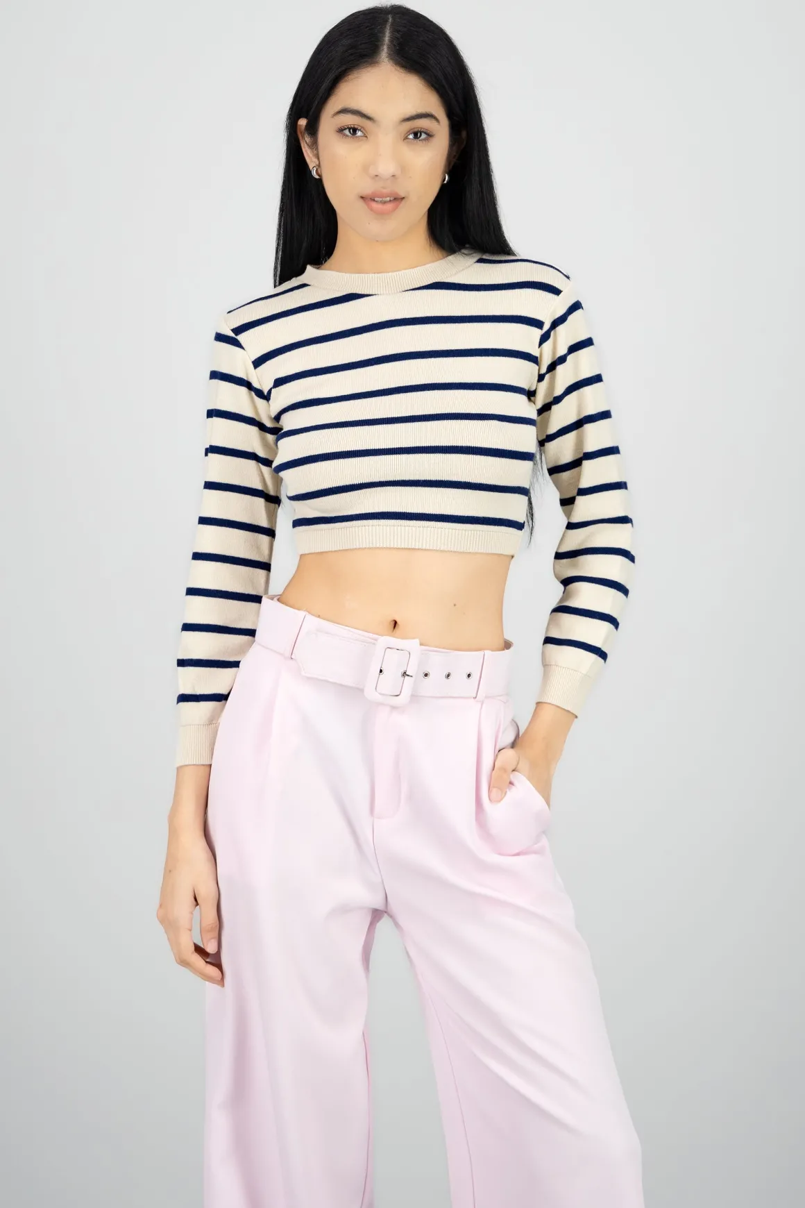 ¡Atrévete a resaltar tu estilo con este suéter! Perfecto para esos días donde solo quieres lucir encantadora y cómoda. Con sus rayas delgadas, es la opción ideal para combinar con tus prendas favoritas.