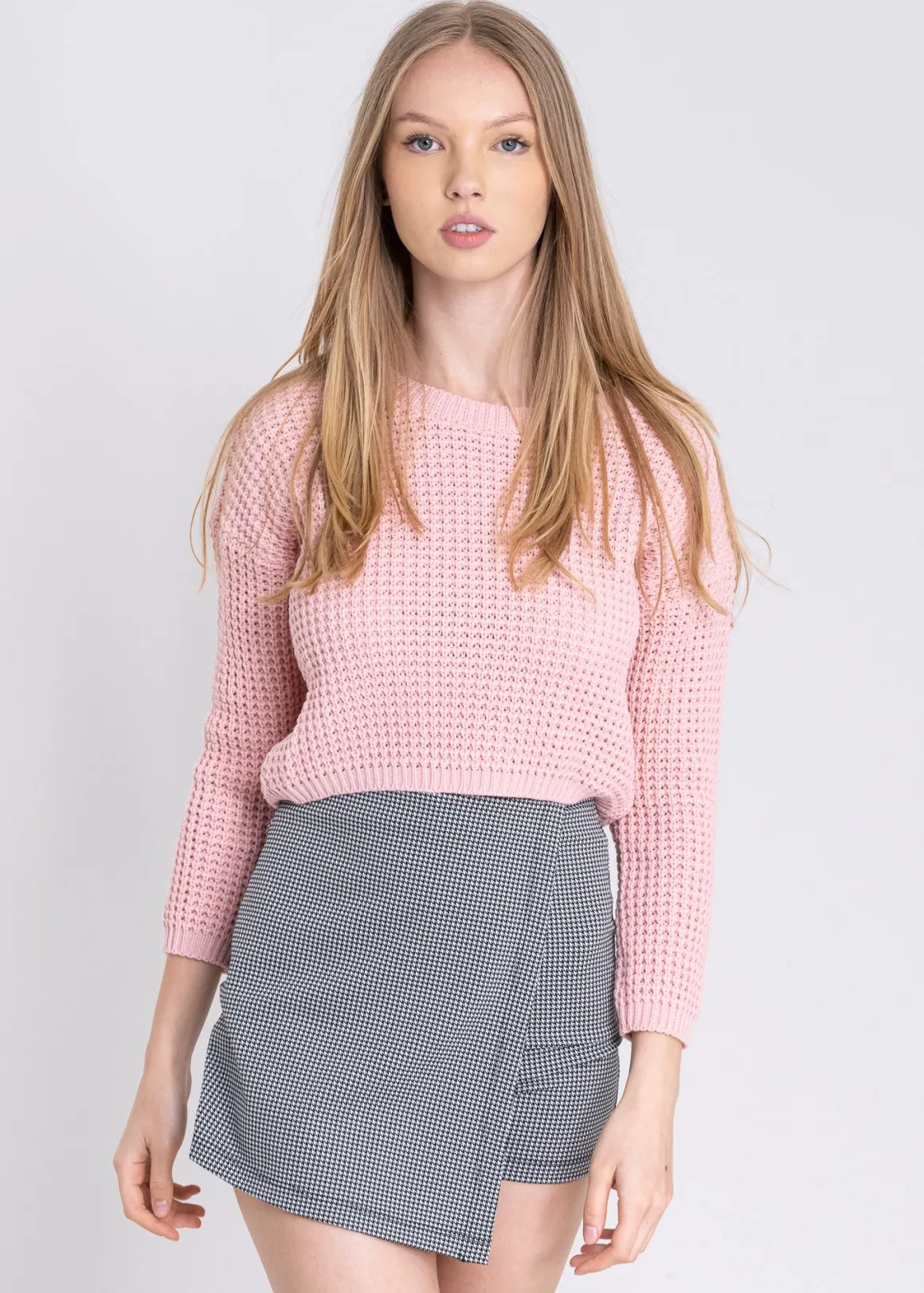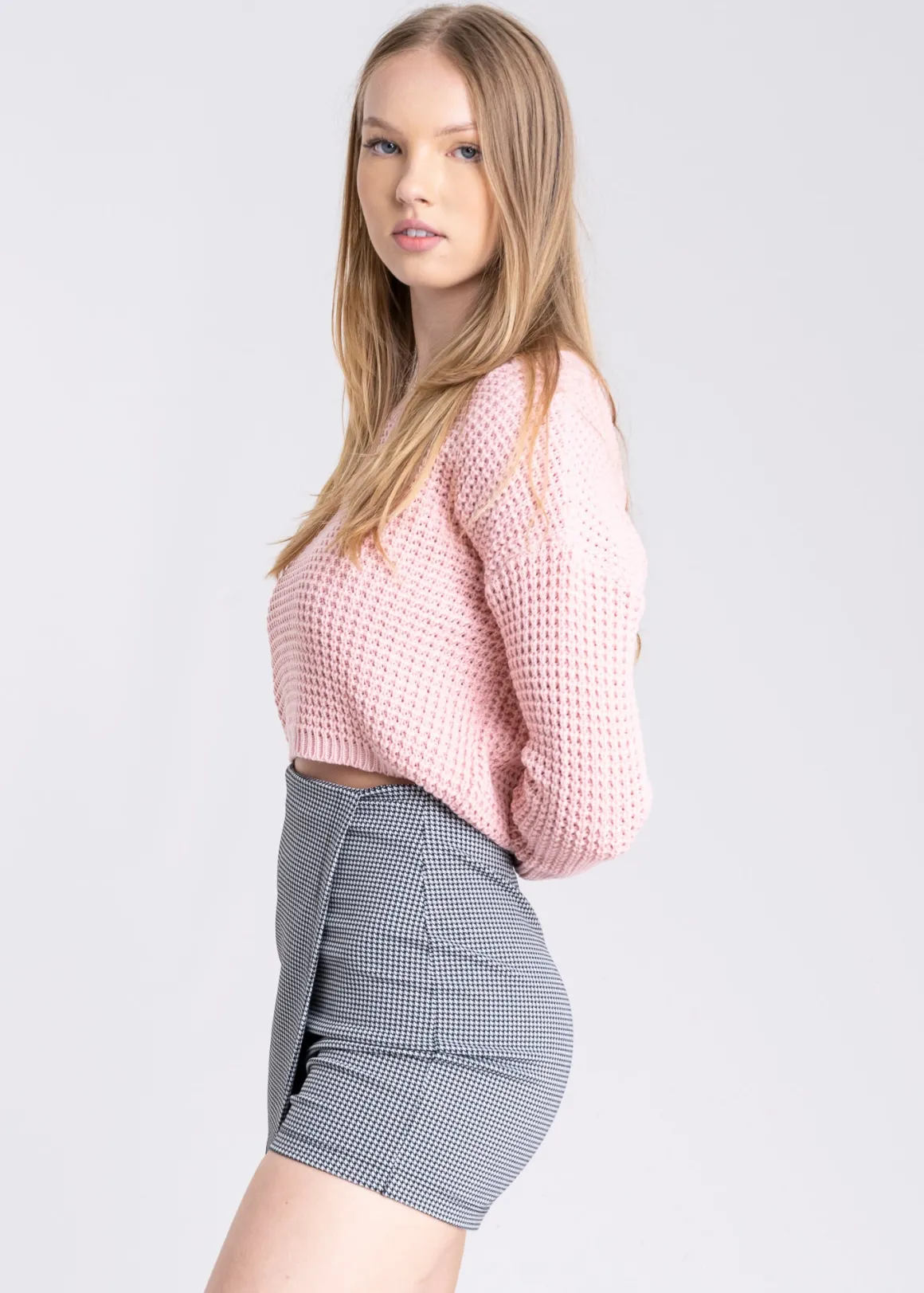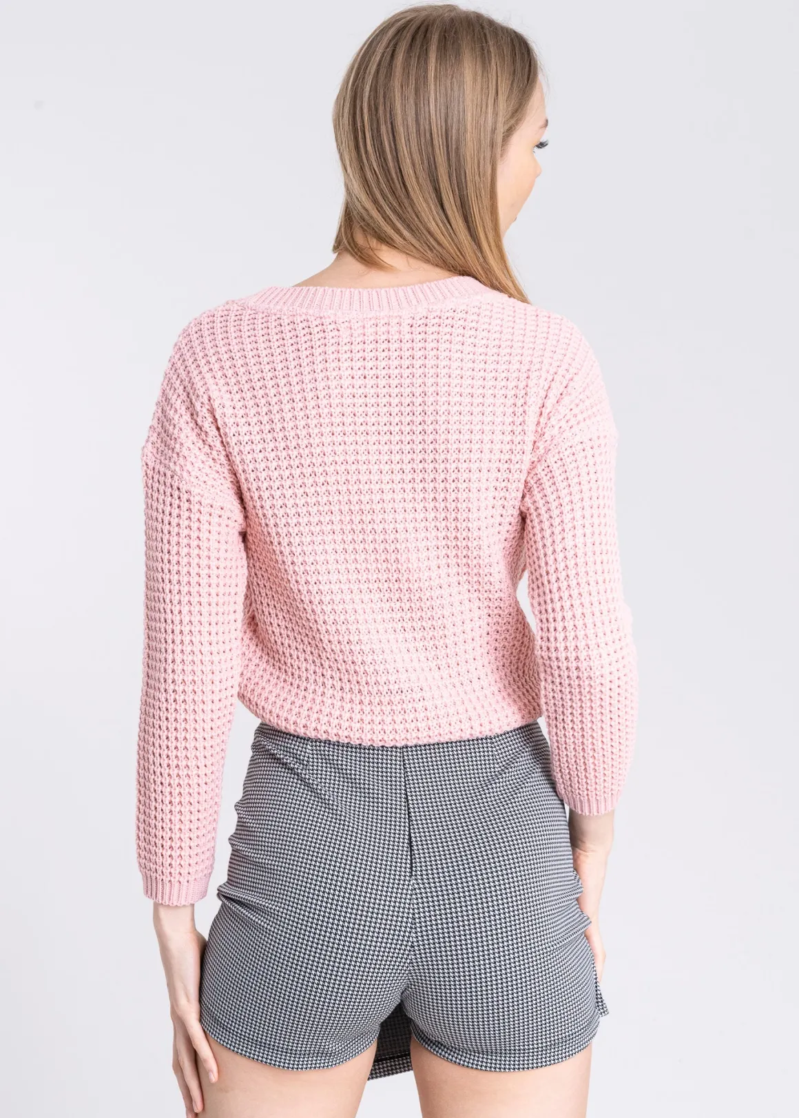 Dale un toque moderno a tu look con este suéter tejido cropped. Diseñado con un cuello redondo y hombros caídos, este suéter es perfecto para un estilo casual y contemporáneo.