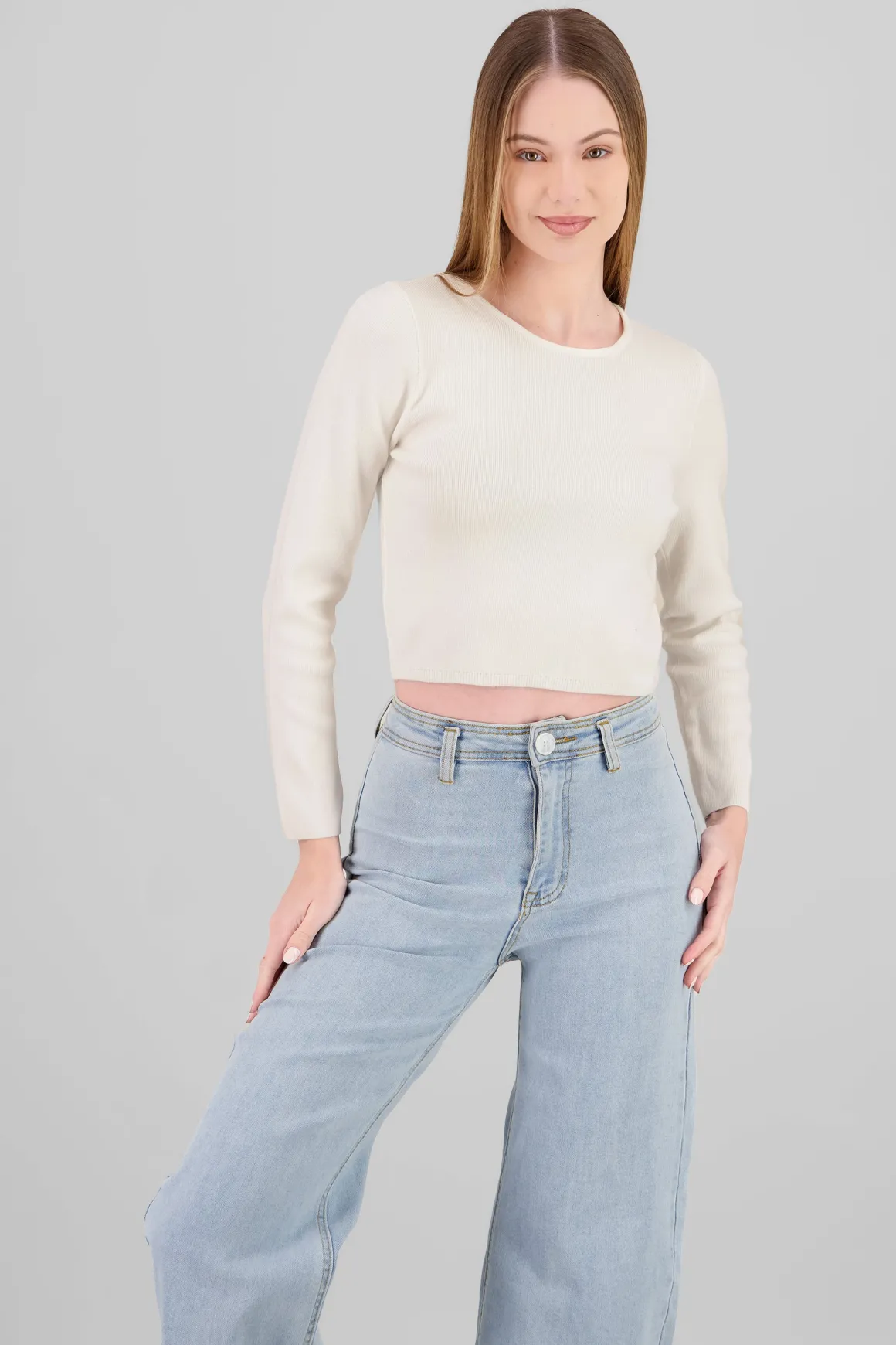 - Cuello redondo, ideal para todo tipo de outfits.