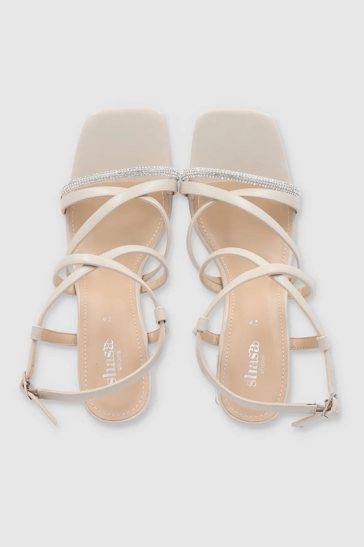 - Multi tiras superiores cruzadas y decoradas con brillos para un toque glamuroso.