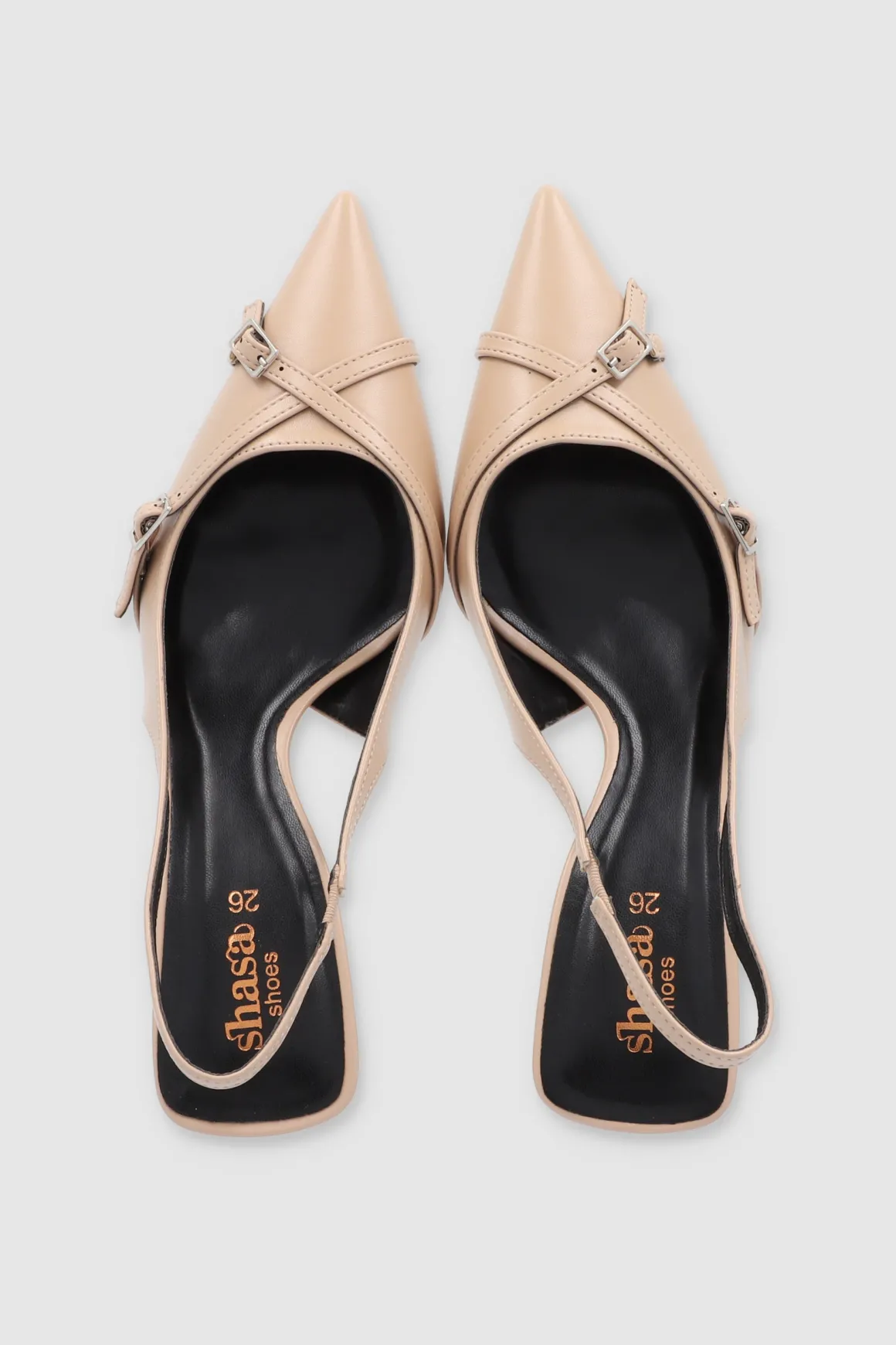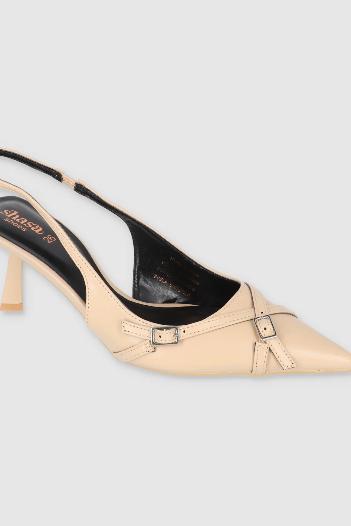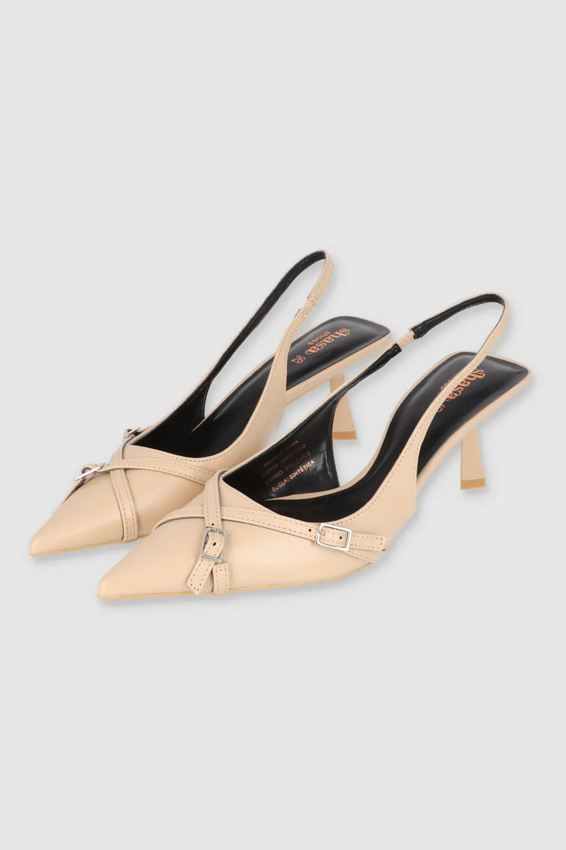 Dale a tu look un toque atrevido con estos tacones puntales de múltiples tiras y hebillas. Perfectos para destacar en eventos especiales.