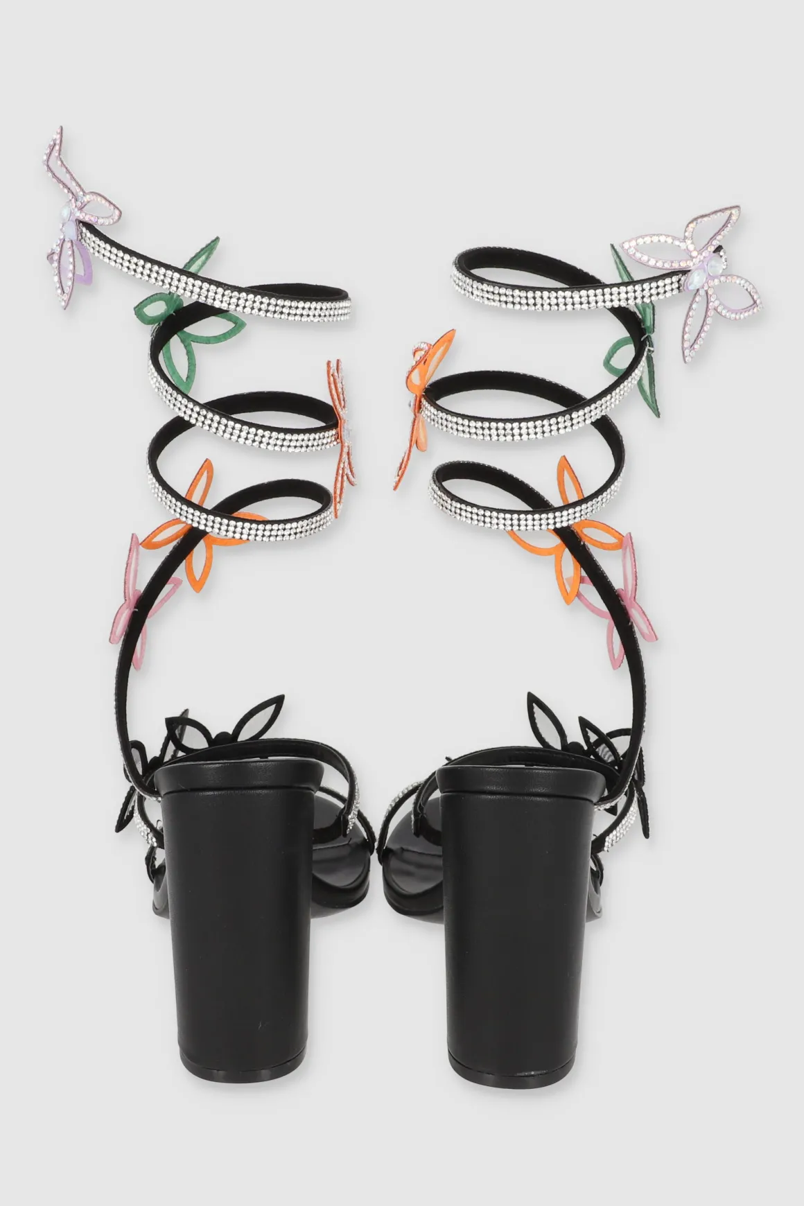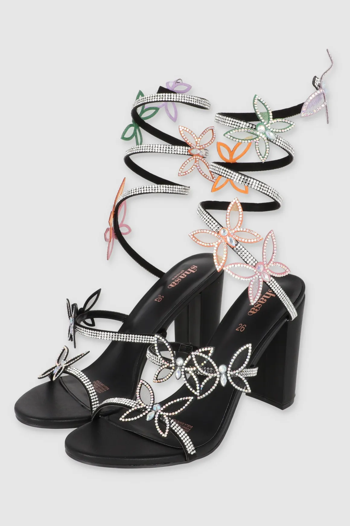 Estos tacones te harán sentir como una verdadera princesa. La cinta en espiral decorada con brillos y mariposas te brindará un toque mágico, mientras que el tacón ancho te asegura estabilidad y comodidad. Son ideales para eventos especiales o para darle un toque extra a tu look diario.