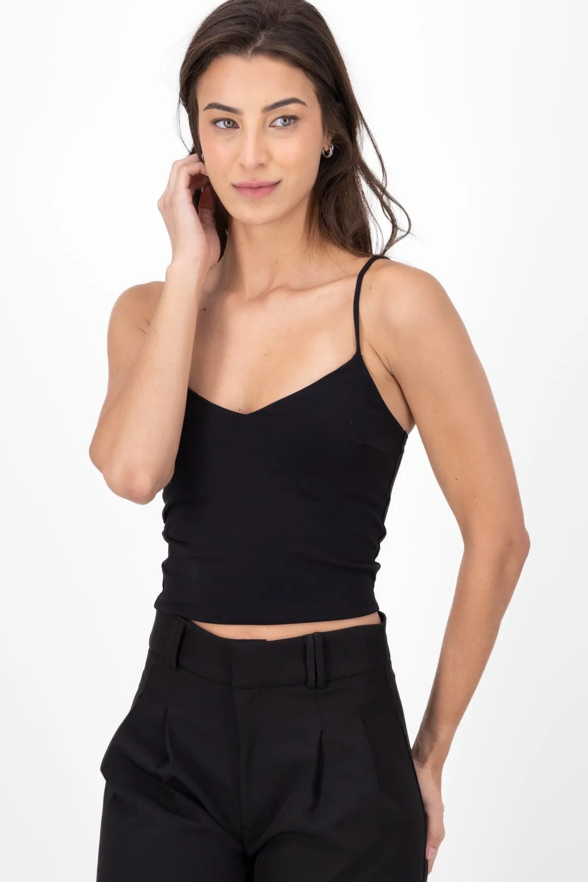 Añade un toque moderno a tu guardarropa con nuestro top liso de tirantes delgados. Con un escote en V que realza tu figura y copas para un ajuste perfecto, este top es ideal para cualquier ocasión. Ya sea que lo combines con jeans para un look casual o con una falda para una salida nocturna, este top será tu nueva prenda favorita.