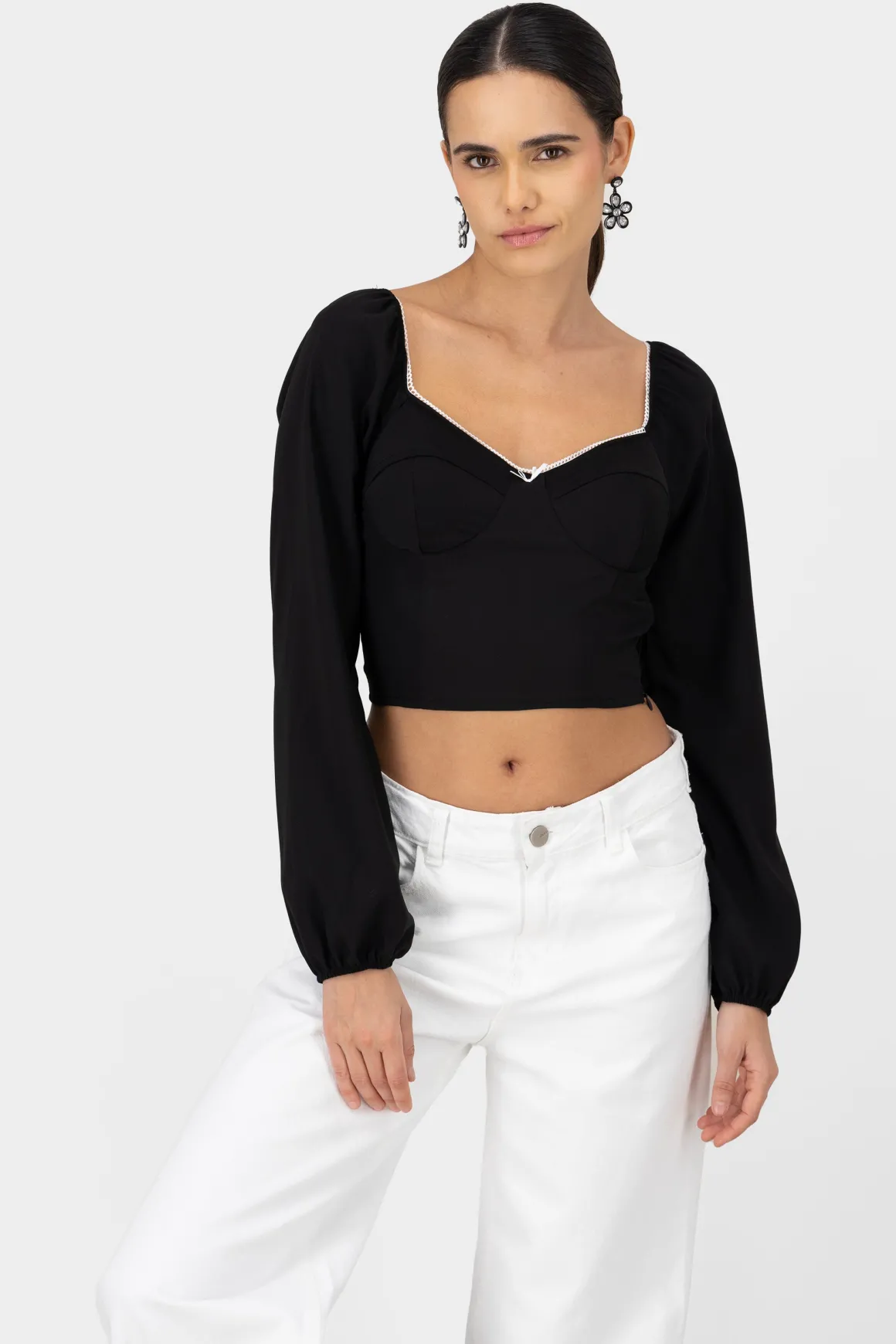 Este top es ideal para combinar con jeans ajustados o una falda de cintura alta. Ya sea para una salida con amigas o una cita informal, este top te garantiza un look chic y lleno de personalidad. ¡Atrévete a brillar con este imprescindible de tu armario!