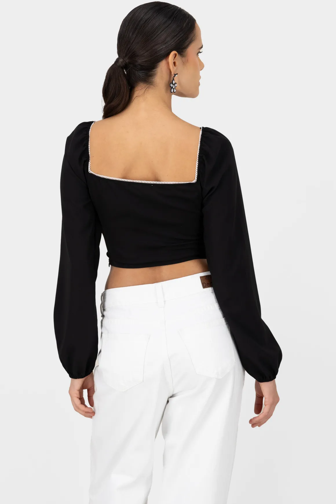Renueva tu estilo con este top de manga larga abullonada, perfecto para destacar tu look casual.