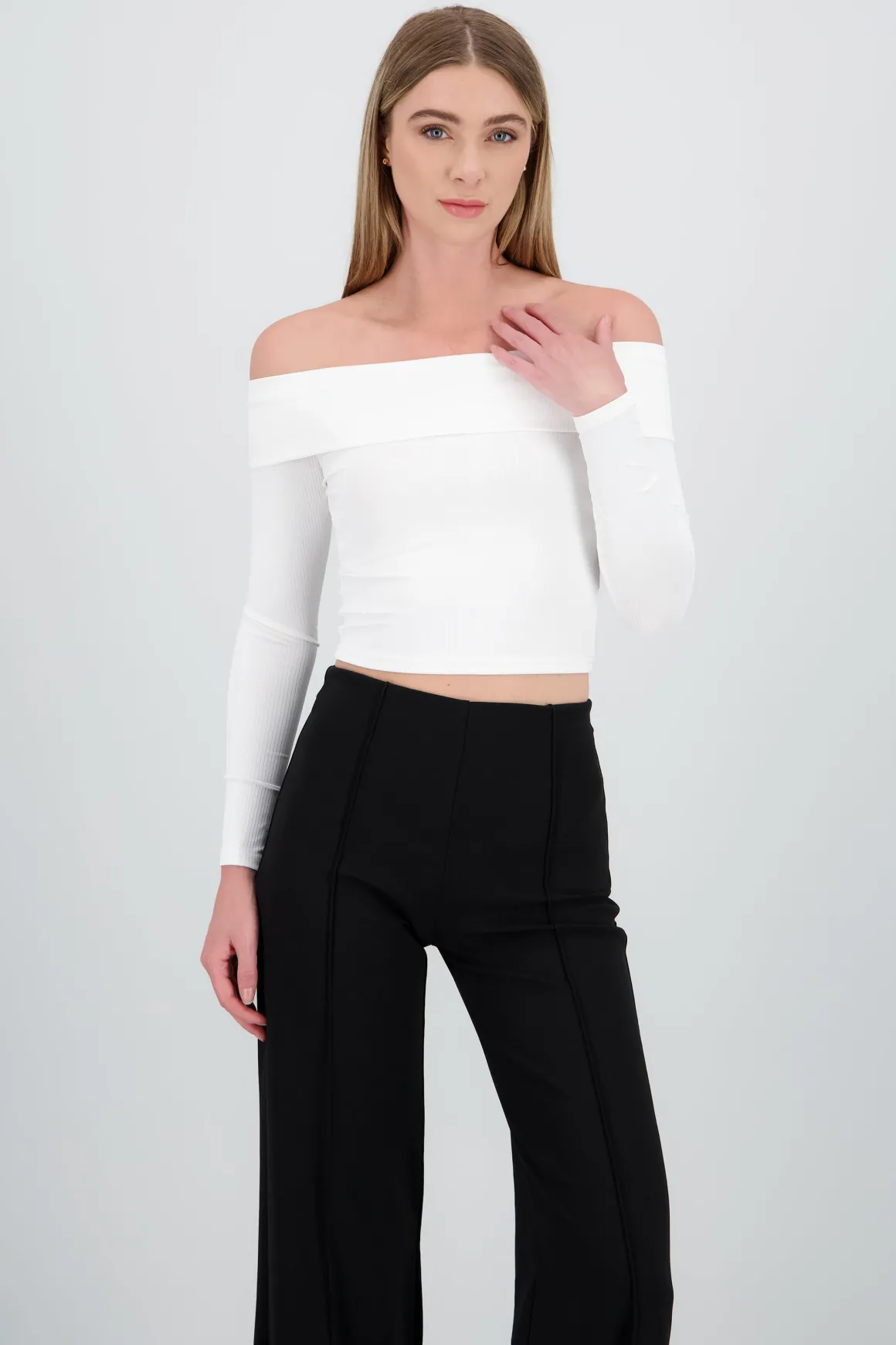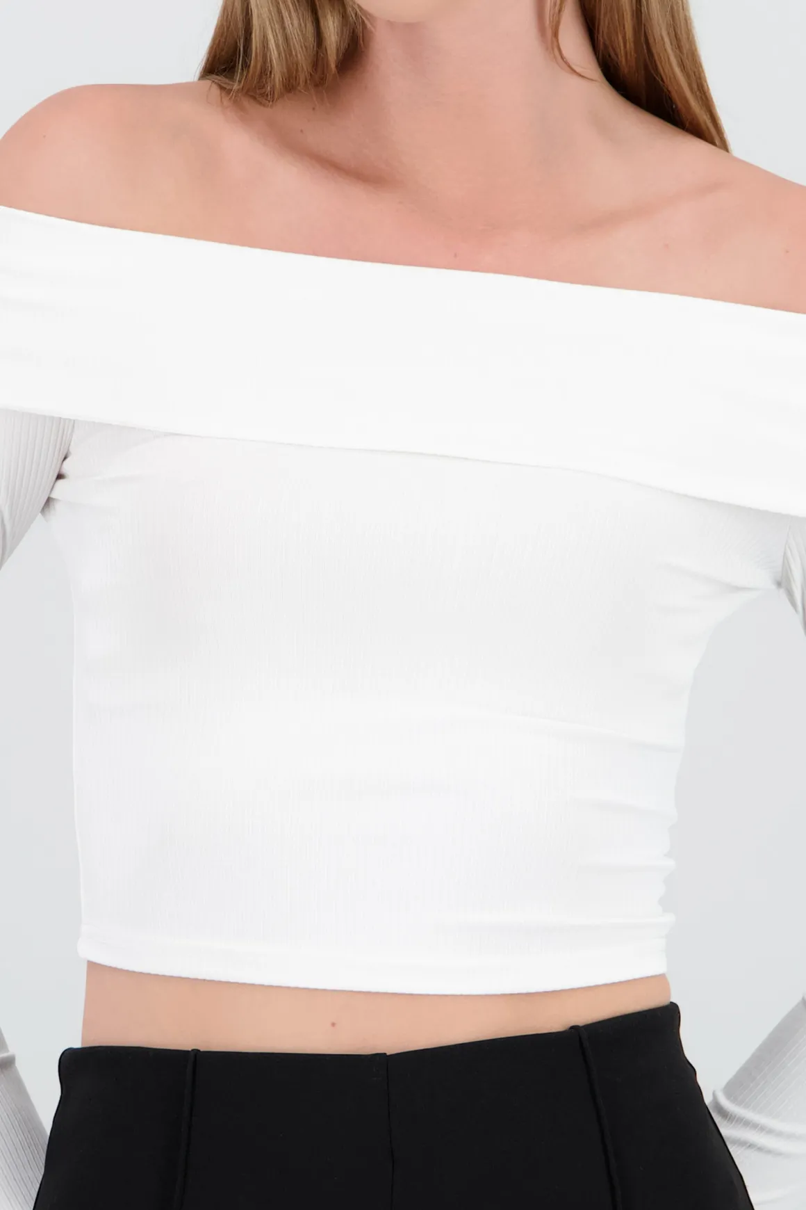 Descubre el top que elevará tu estilo al siguiente nivel. Nuestro top acanalado con hombros descubiertos y manga larga es la combinación perfecta de comodidad y tendencia. Ideal para un look casual chic, este top se adapta a cualquier ocasión, desde una salida con amigas hasta una cita especial.