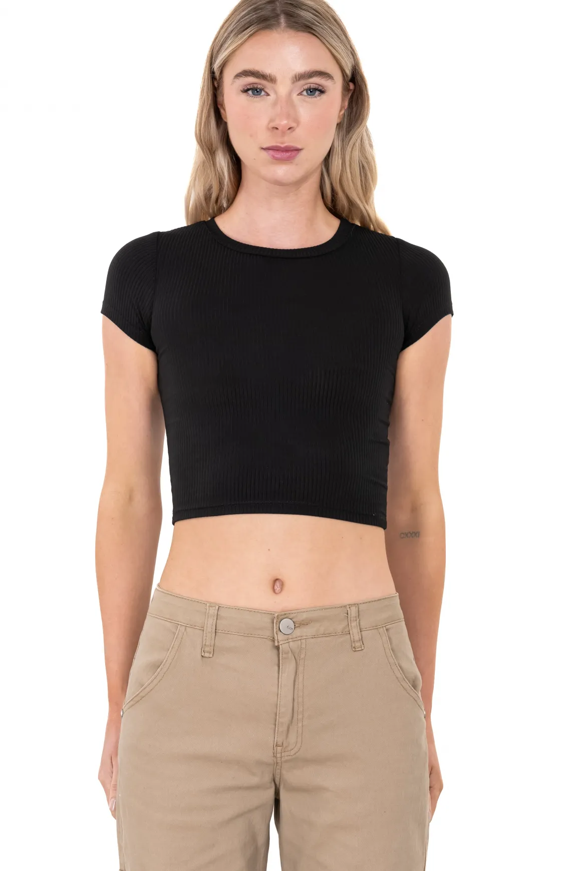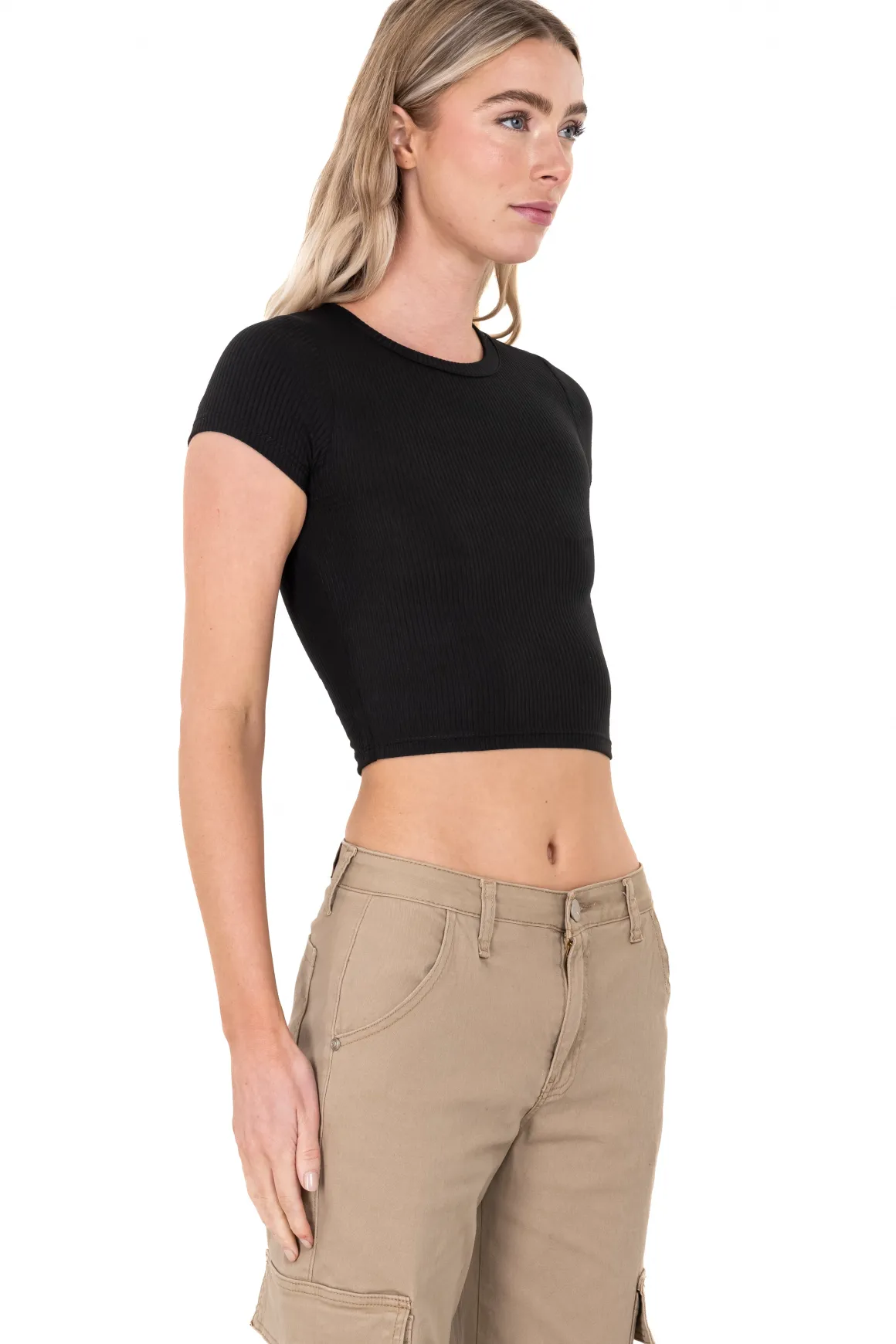 Este top manga corta acanalado es la prenda perfecta para destacar tu estilo. Se adapta a tu cuerpo de forma cómoda y favorecedora. El diseño acanalado le da un toque moderno y versátil que puedes combinar con cualquier look, ya sea casual o más sofisticado. Las mangas cortas añaden un toque fresco y juvenil, ideal para lucir durante el día o en una salida con amigos. Ya sea que lo uses con tus jeans favoritos o una falda de moda, este top es una pieza imprescindible en tu colección de ropa.