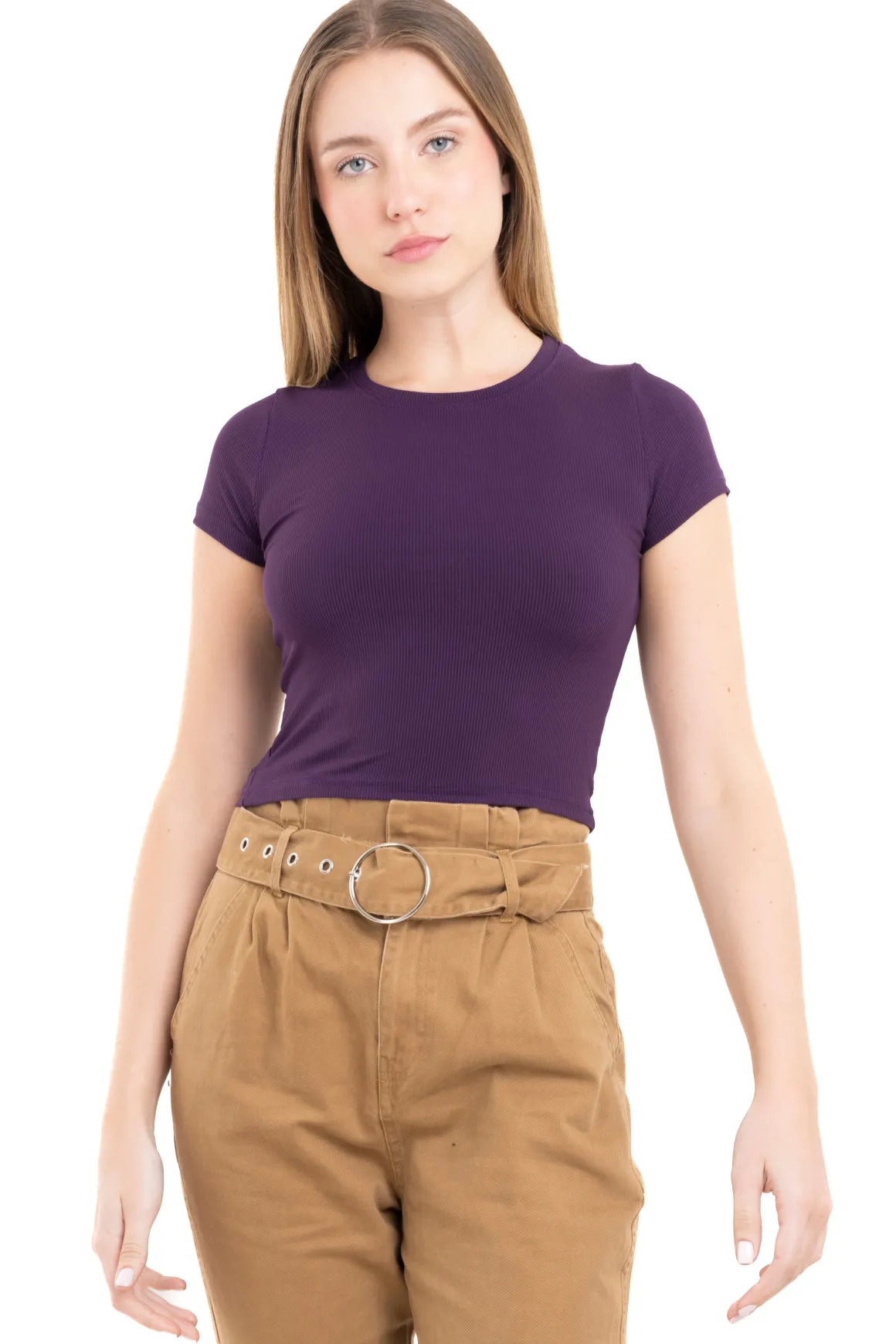 Top manga corta acanalado