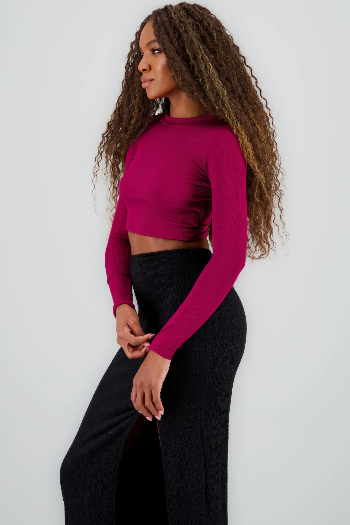 Este top liso de manga larga con cuello alto es un básico que puedes usar en cualquier ocasión. Su diseño sencillo y elegante se puede combinar con jeans o faldas para un look casual o más arreglado.