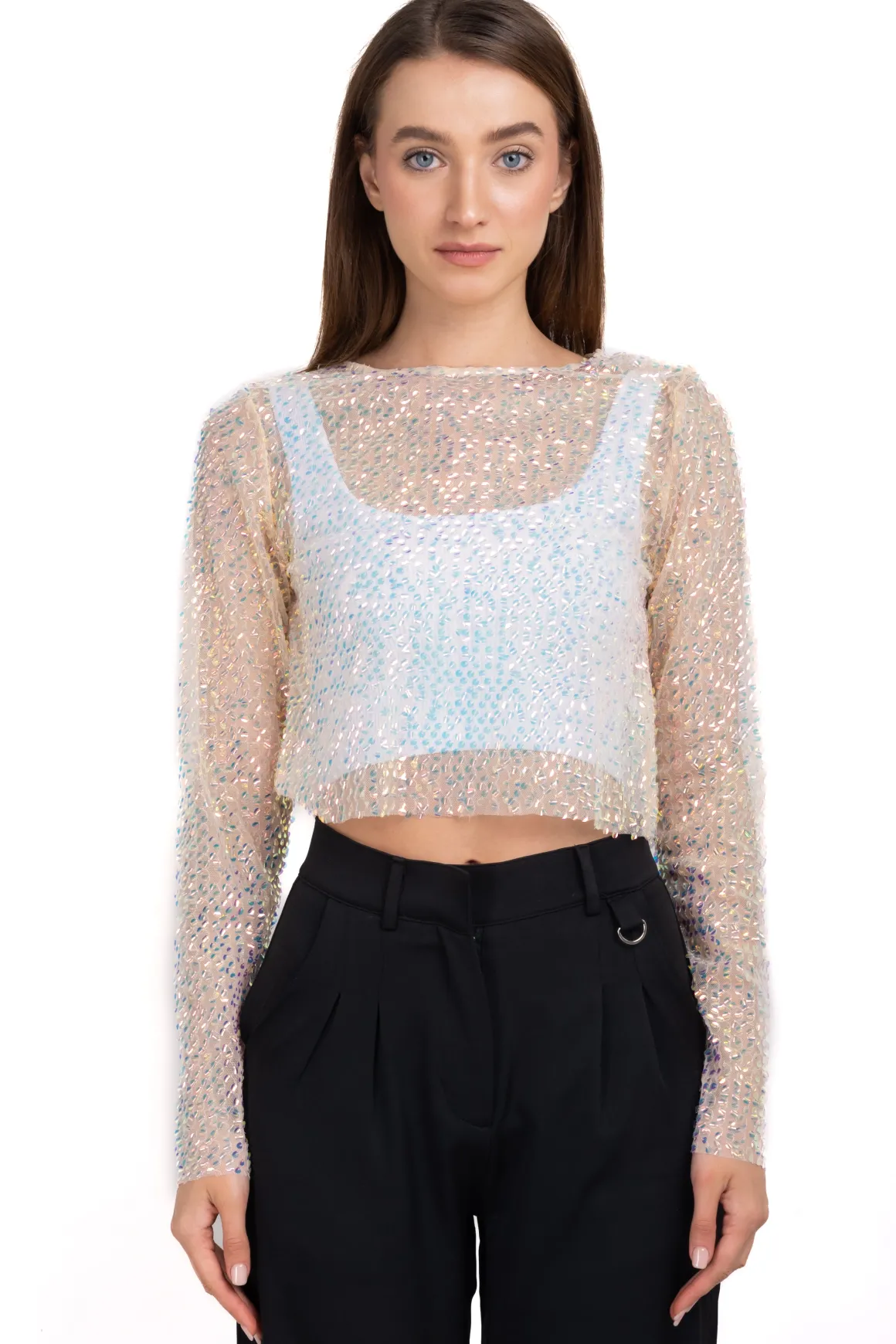 Top manga larga lentejuelas iridiscentes