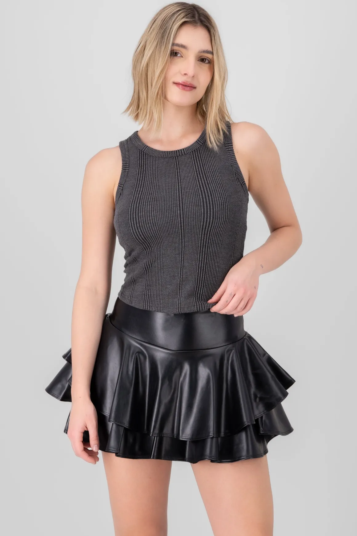 Luce relajada con este top acanalado sin mangas y efecto deslavado. Un básico moderno para cualquier armario juvenil, ideal para combinar con jeans de tiro alto o faldas.