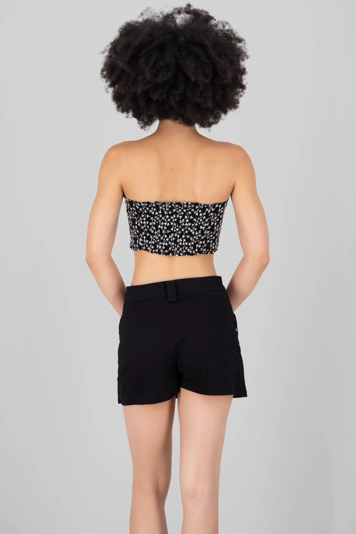 Este top strapless es una pieza que destaca por su sencillez y encanto. Con un diseño sin tirantes y un ajuste perfecto, es ideal para mostrar los hombros. El detalle de flores bordadas le añade un toque romántico y delicado, perfecto para un look veraniego. Puedes combinarlo con una falda o pantalones de cintura alta para un outfit fresco y estilizado. Es una prenda versátil que puedes usar en diversas ocasiones, desde una salida casual hasta una cita especial.