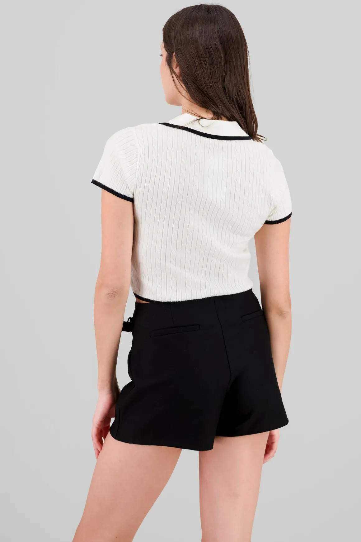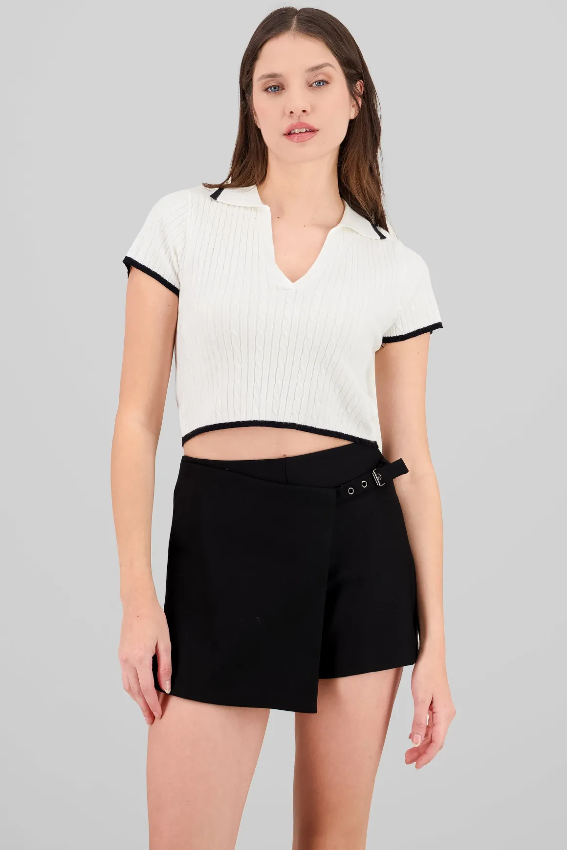 ¡Atrévete a destacar con este top de manga corta que combina estilo y diversión! Perfecto para cualquier ocasión, su diseño con contraste es ideal para quienes buscan un toque único en su atuendo diario.