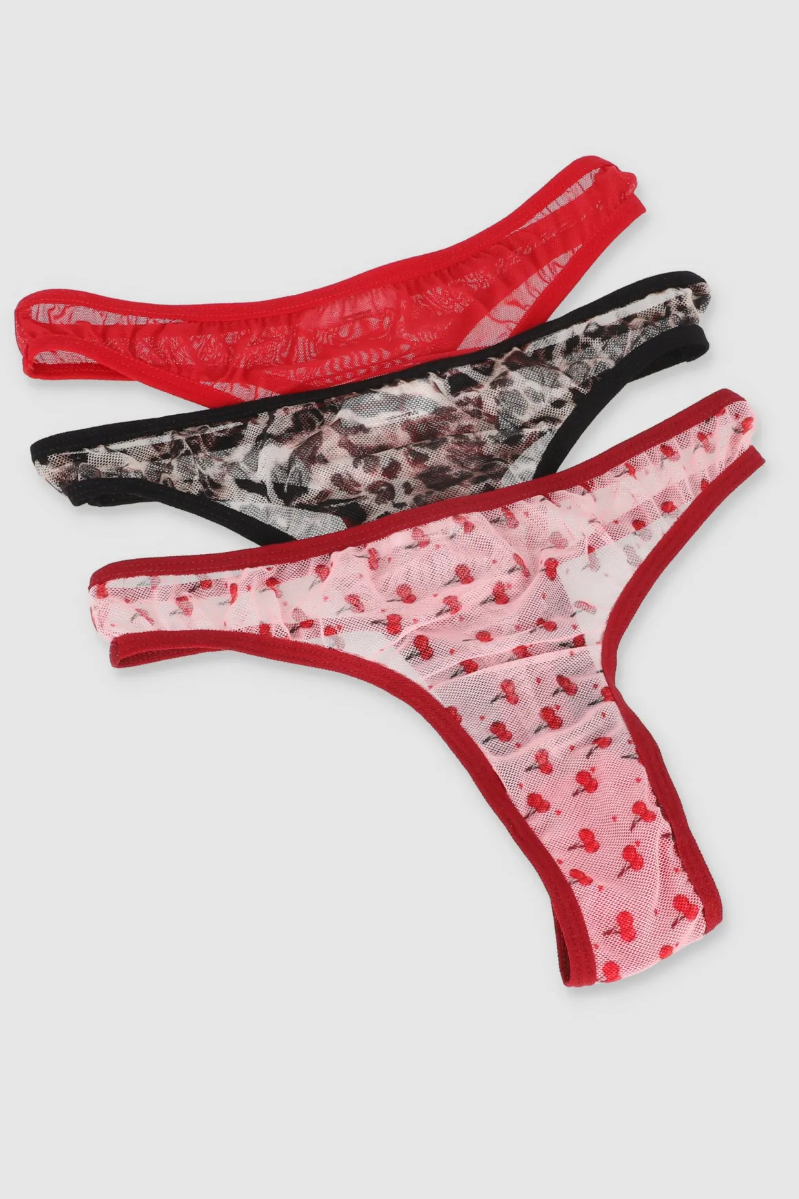¡Dale un giro divertido a tu lencería! Este tripack de tangas es perfecto para quienes buscan un toque único y audaz. Colores vibrantes y diseños únicos que te harán sentir genial.