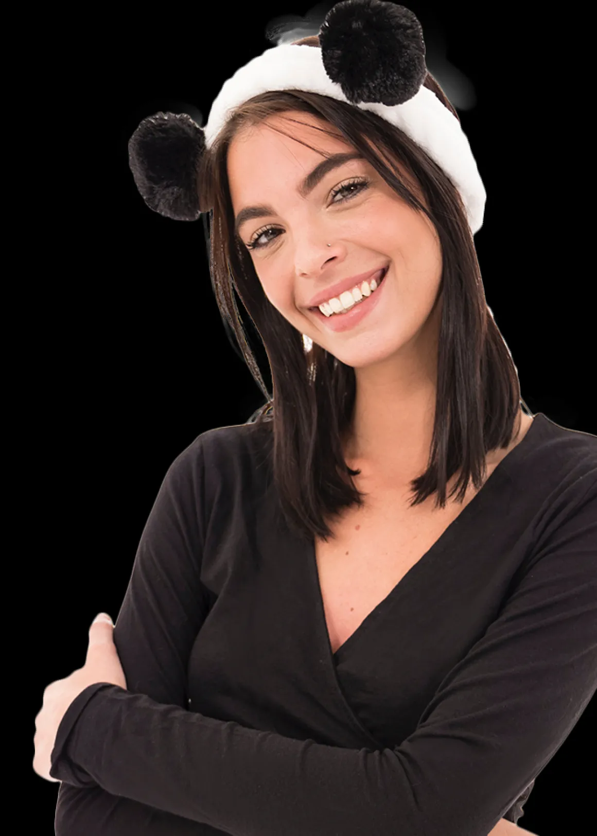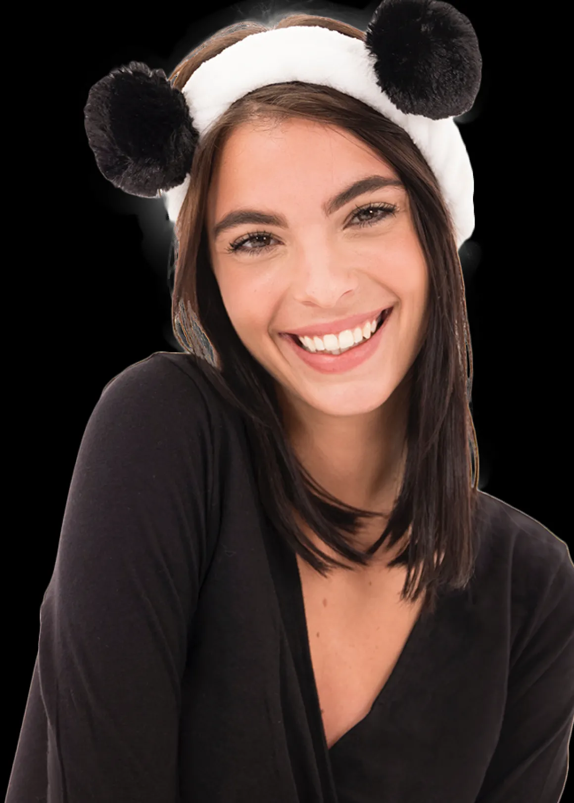 La Valerina desmaquillante orejas osito es la banda perfecta para cuidar tu piel mientras te relajas. En tejido elástico suave, esta banda es ideal para mantener tu cabello en su lugar durante tu rutina de cuidado facial. Además, su divertido diseño con orejas de osito en el lado superior la hace única y adorable.