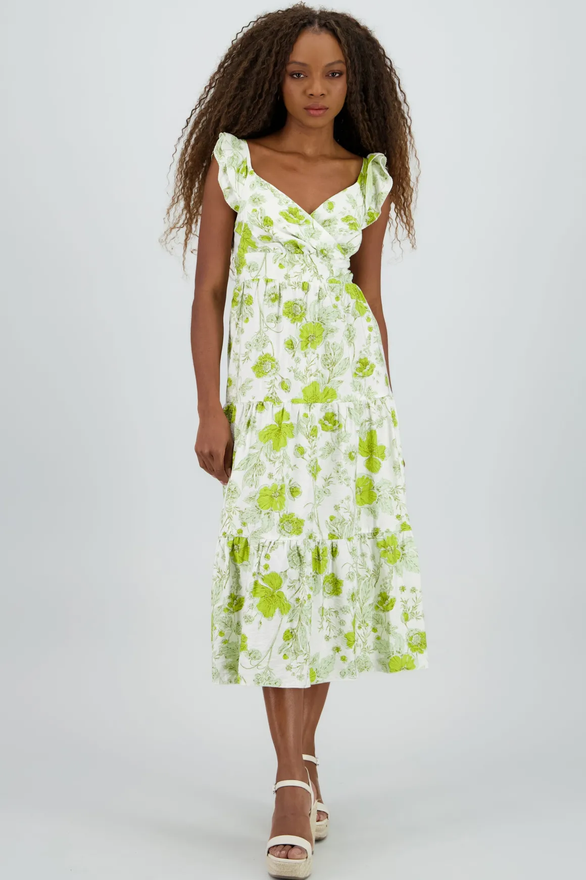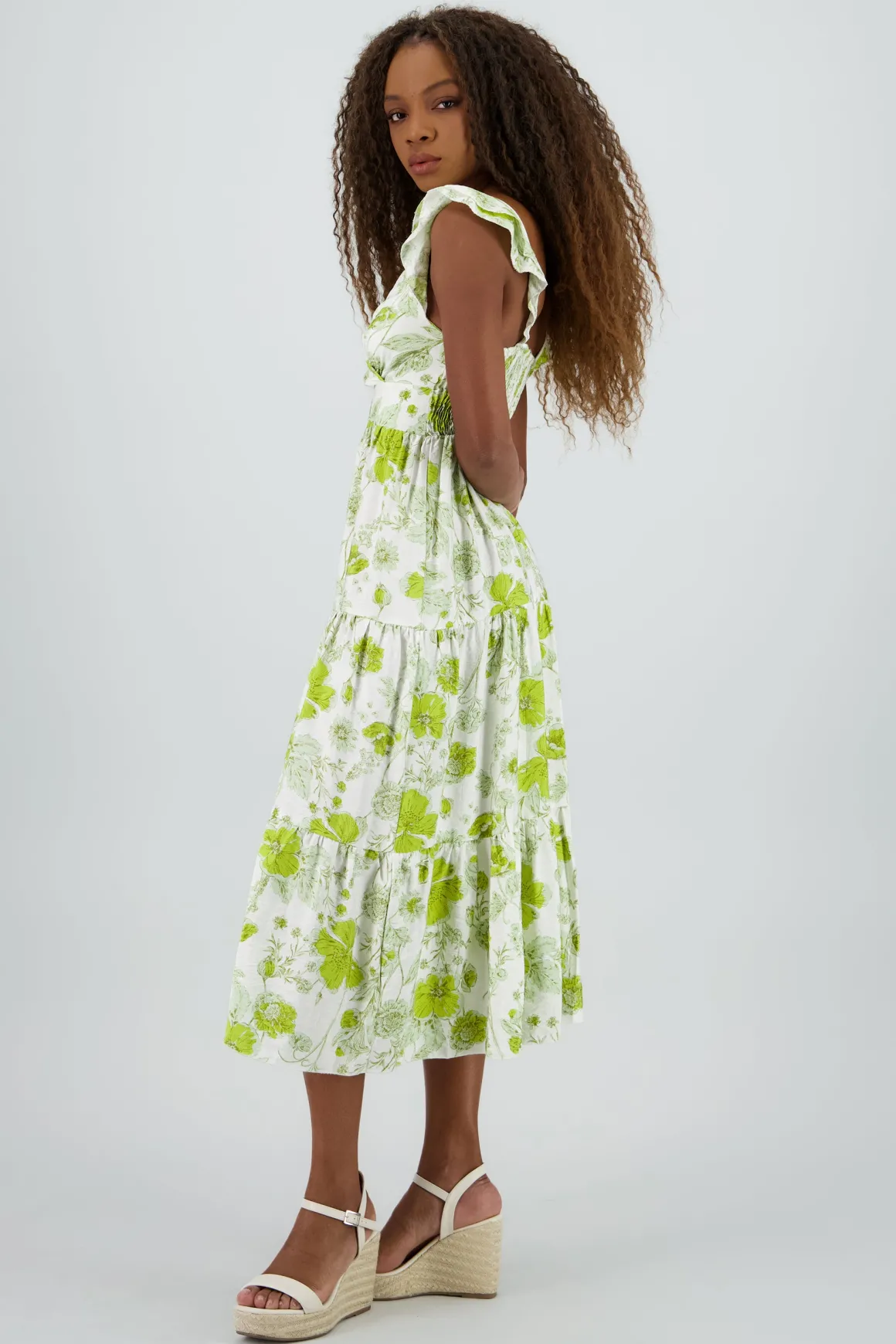 Este vestido es perfecto para esos días en los que quieres estar cómoda y con estilo. Su estampado de flores y los detalles de olanes le dan un toque único que resalta tu look sin esfuerzo. Ideal para cualquier ocasión, desde un día casual hasta una salida con amigas.