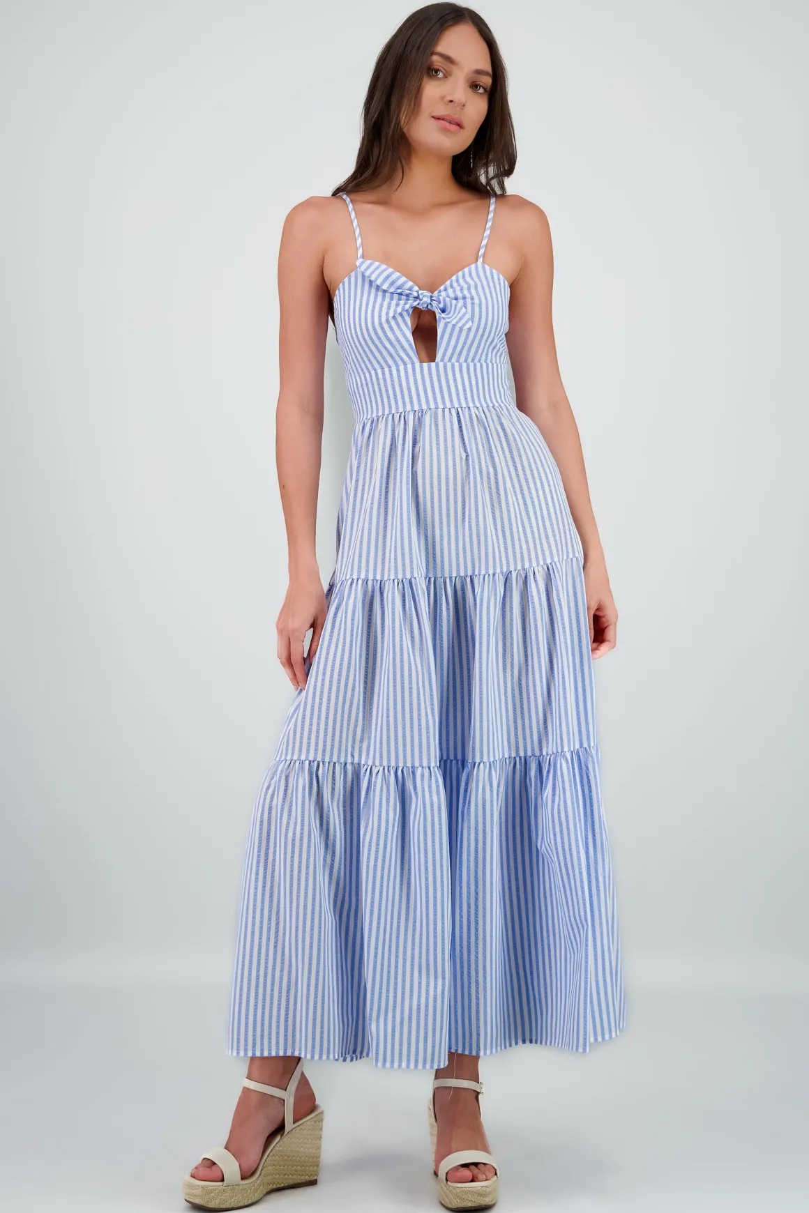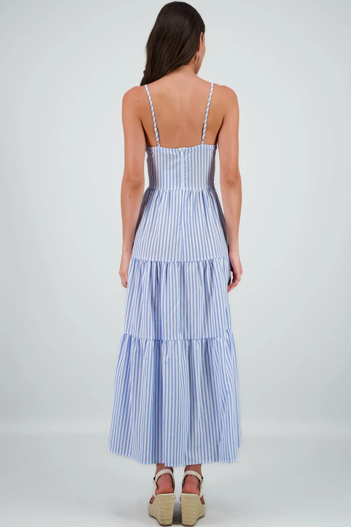 Descubre la esencia de un verano lleno de estilo con este vestido maxi de rayas. Perfecto para cualquier ocasión, este diseño es una opción versátil que se adapta a tu día a día.