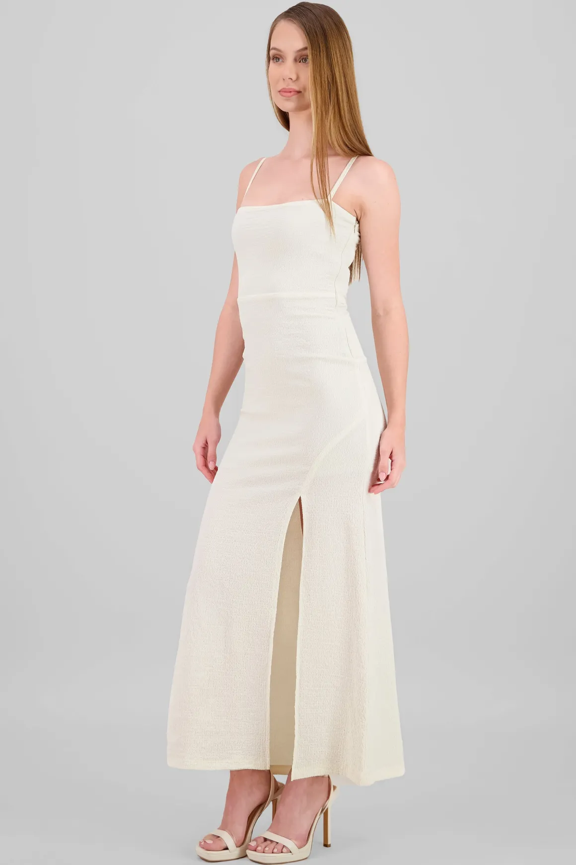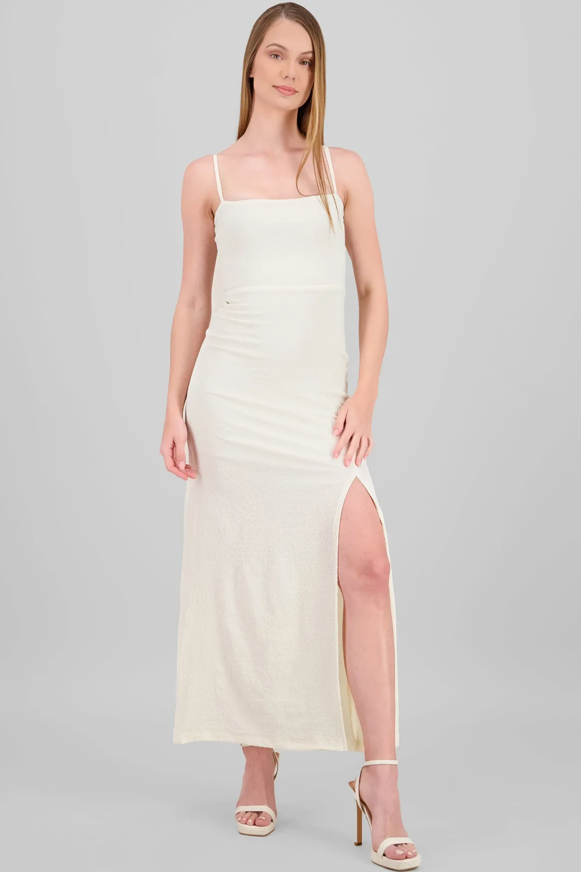 Descubre la esencia de la versatilidad con este vestido maxi que se adapta a cualquier ocasión. Su textura única añade un toque especial, convirtiéndolo en una pieza imprescindible en tu guardarropa.