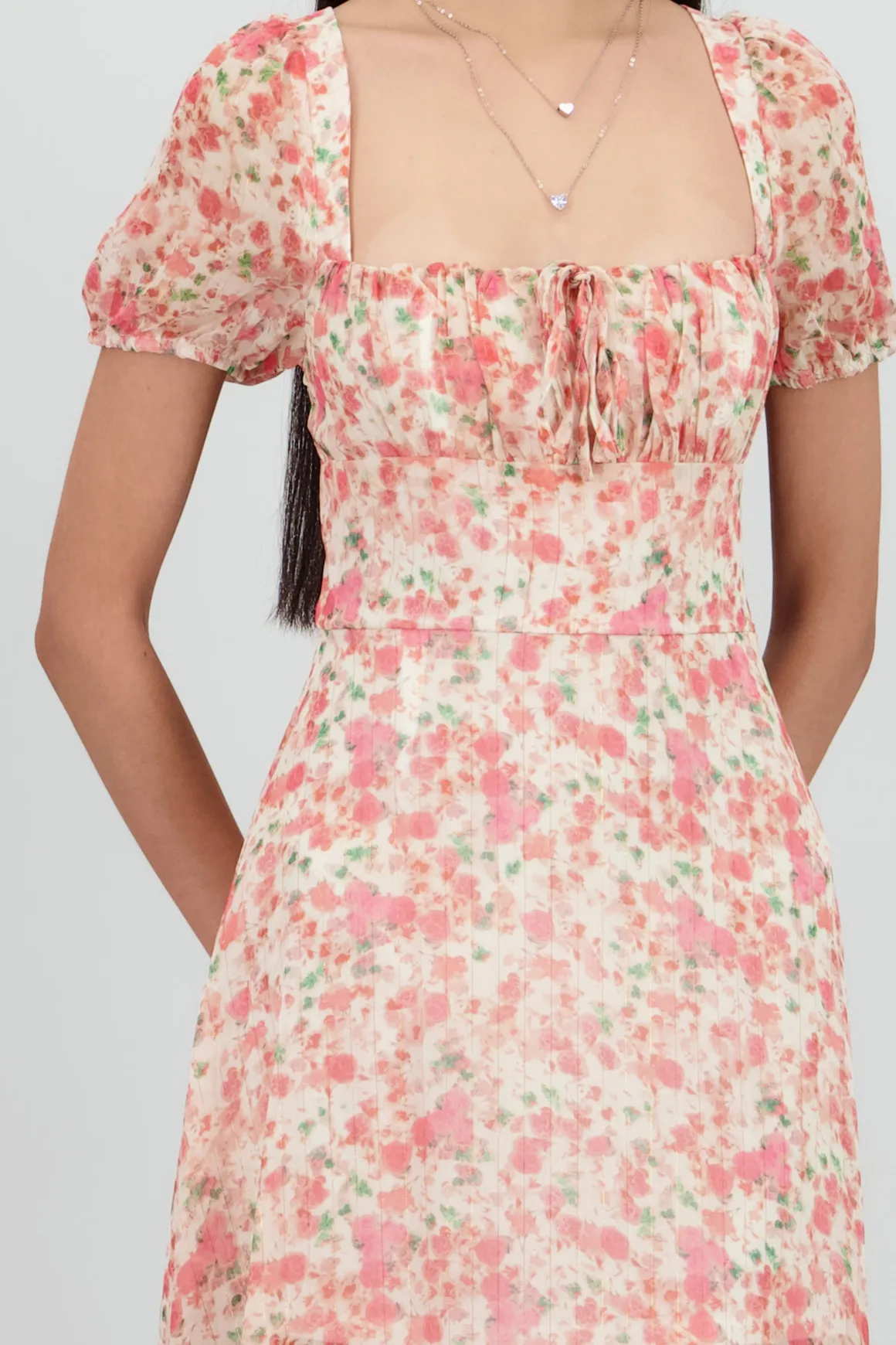 Vestido midi flores lineas lurex