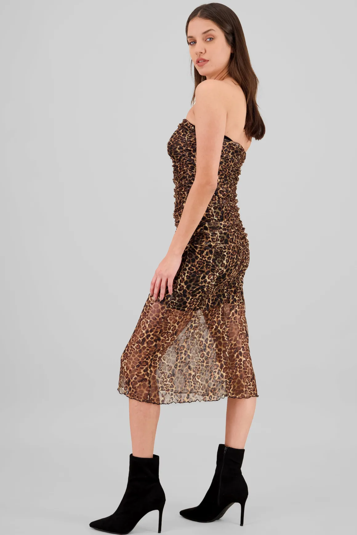 - Diseño midi con estampado animal print.