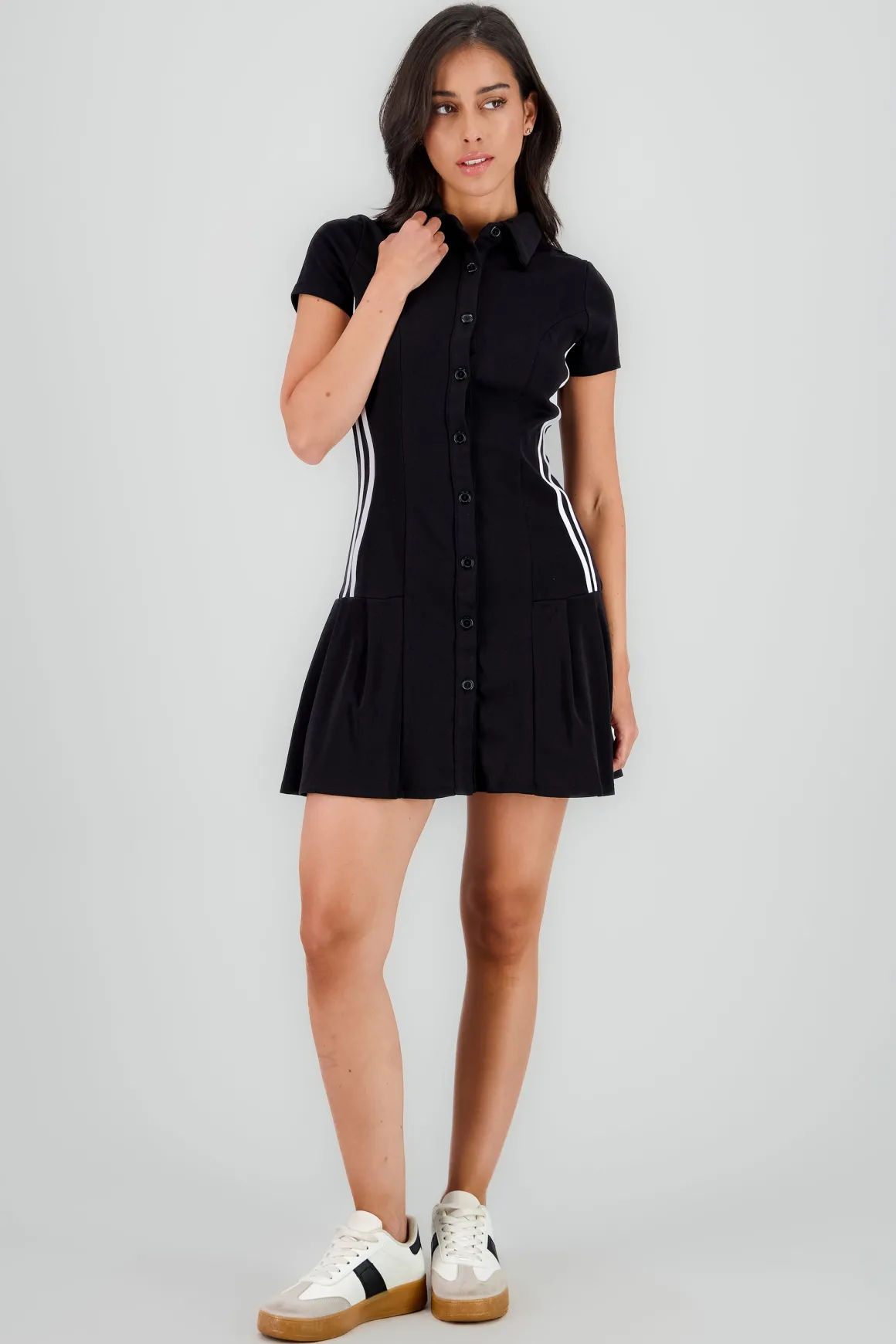 ¡Prepárate para destacar en cualquier ocasión con este vestido! Su diseño de mini falda tableada y cuello polo le da un toque juvenil y desenfadado, perfecto para lucir en un día casual o una salida con amigas.